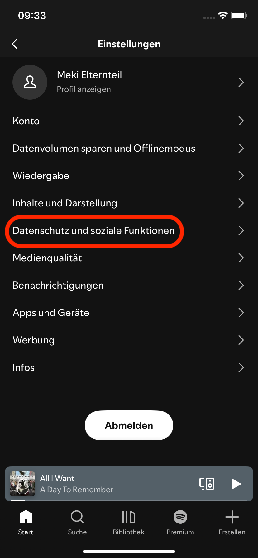 Spotify ist erst ab 18 Jahren. Für Kinder zwischen 7 bis 10 Jahren müssen die Eltern es erlauben. Das können Eltern einstellen: