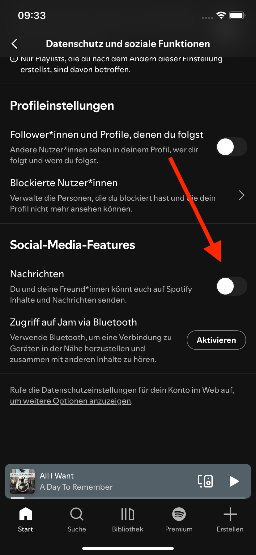 5. Deaktivieren Sie den Schieberegler bei Nachrichten.
