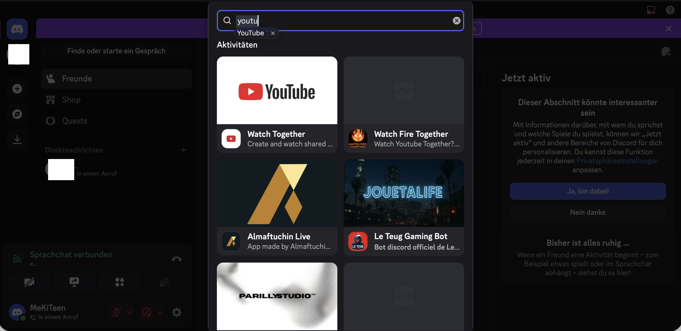 Discord·Aktivitäten wie „Watch Together" funktionieren nur beim Telefonieren. Das bedeutet: Ihr Kind kann mit Freunden zusammen Videos schauen.