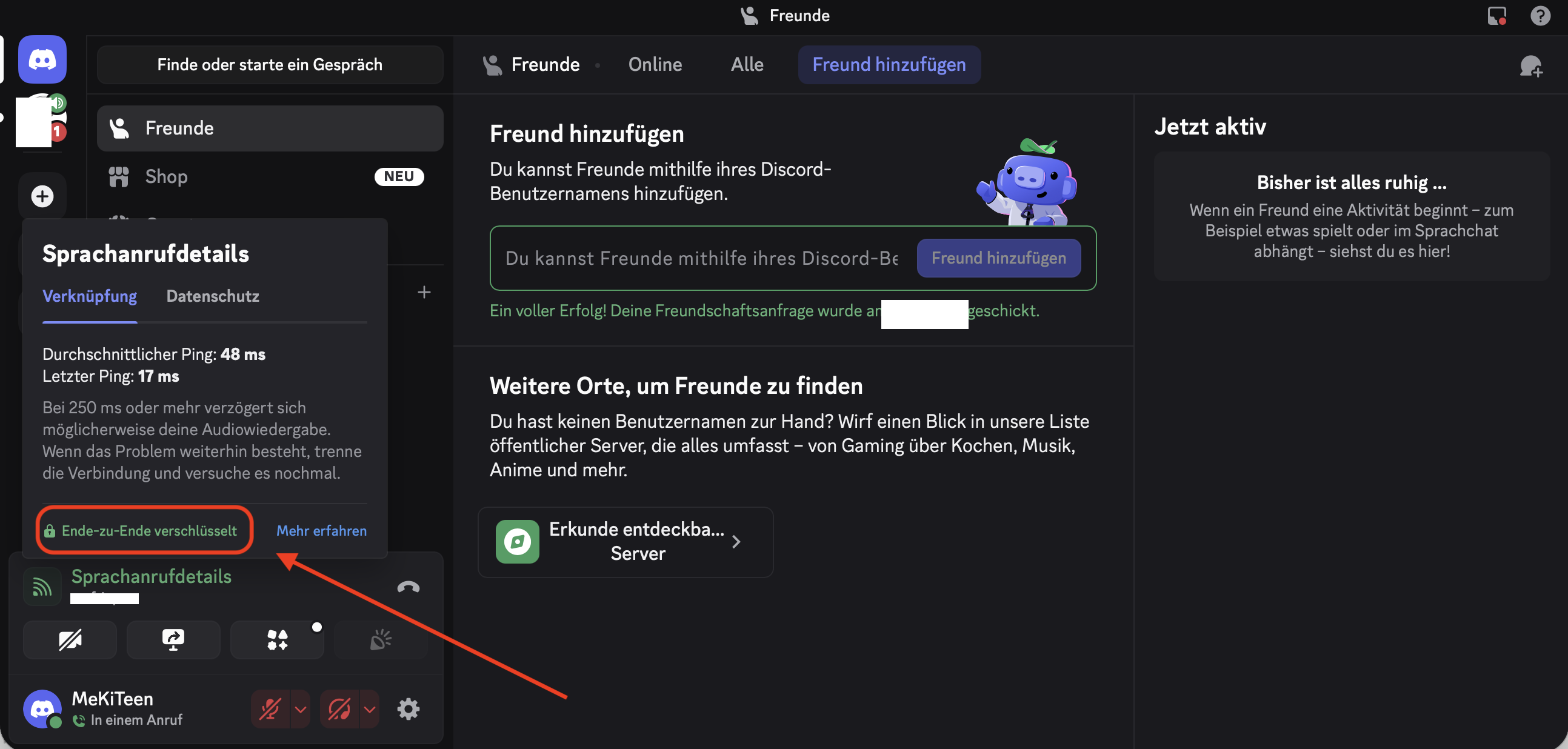 Nicht alle Anrufe bei Discord sind Ende-zu-Ende verschlüsselt.Sie können das in den Anruf·details sehen.