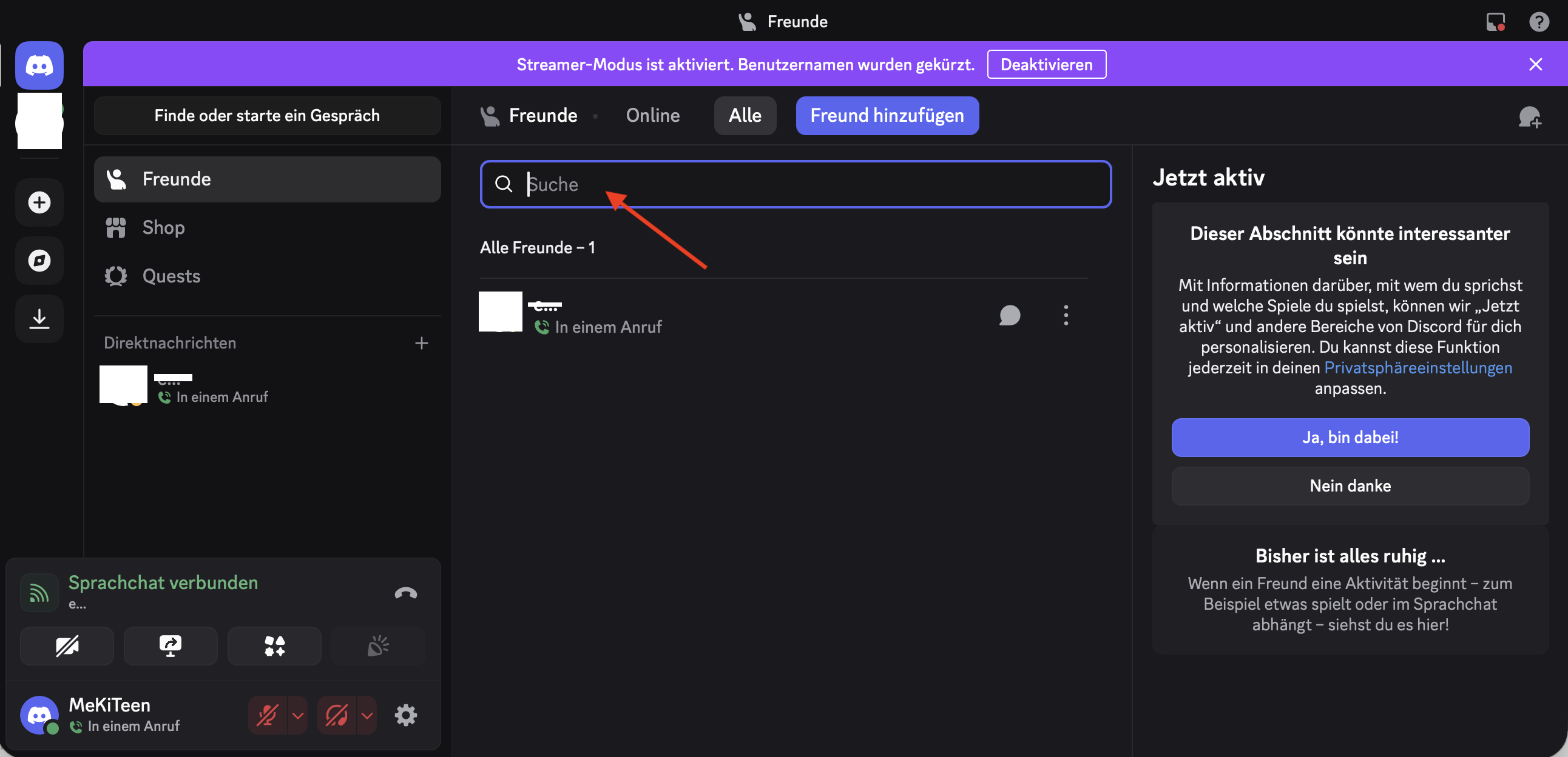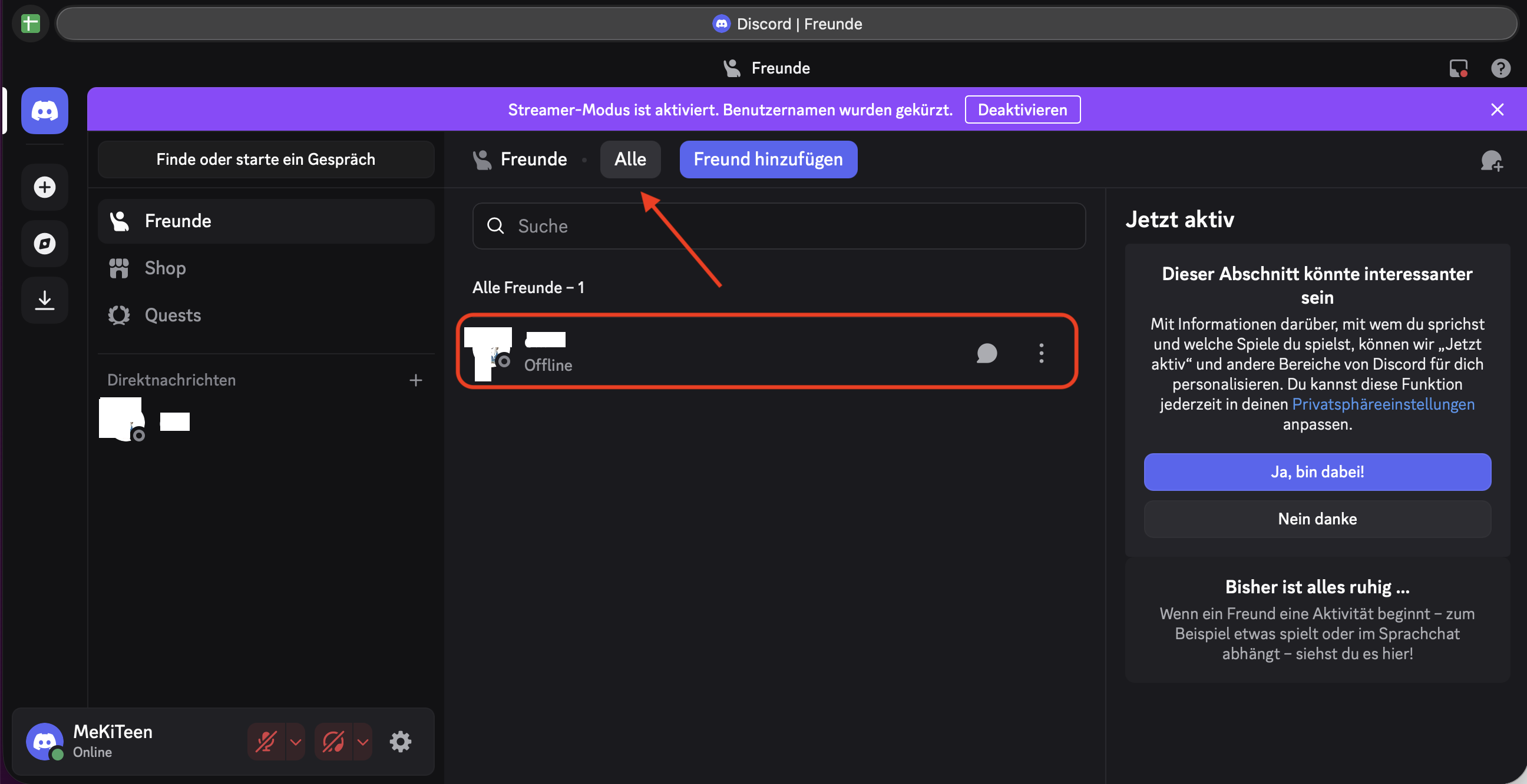 6. Scrollen Sie runter zur Überschrift Freundschafts·anfragen.7. Deaktivieren Sie den Schiebe·regler bei Jeder.8. Deaktivieren Sie den Schiebe·regler bei Freunde von Freunden.9. Deaktivieren Sie den Schiebe·regler bei Server·mitglieder.