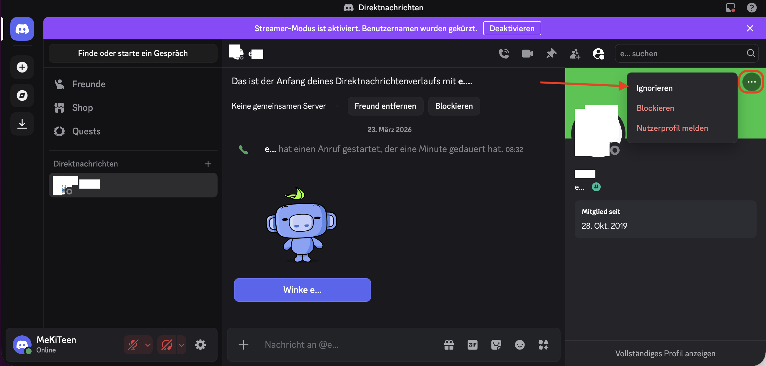 Jemand nervt Ihr Kind auf Discord? Dann kann Ihr Kind diese Person stumm·schalten. Das heißt: Ignorieren·Funktion.
