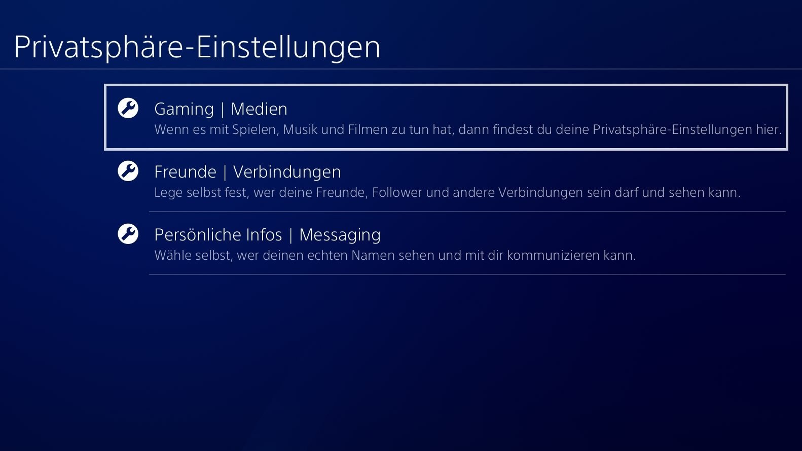 Es gibt auch Play-Station-Network.Damit kann man online Spiele kaufen. Das kostet aber Geld! Für Play-Station-Network können Sie extra Einstellungen machen. Klicken Sie hier: Play-Station-Network