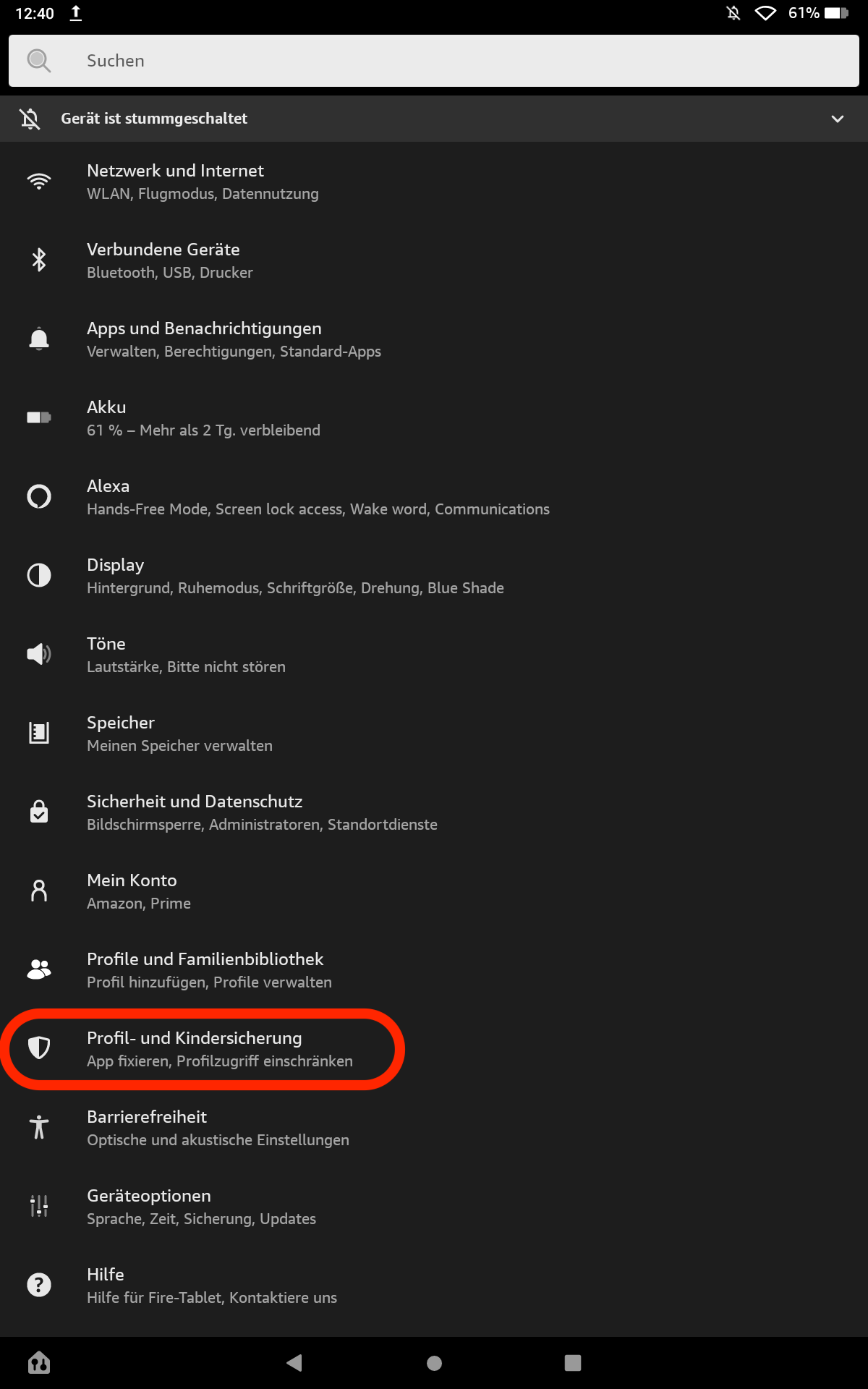 Wenn Sie kein eigenes Kinderprofil anlegen möchten, können Sie die Kinderschutzeinstellungen auch im aktuell angemeldeten Profil auf dem Tablet einstellen: