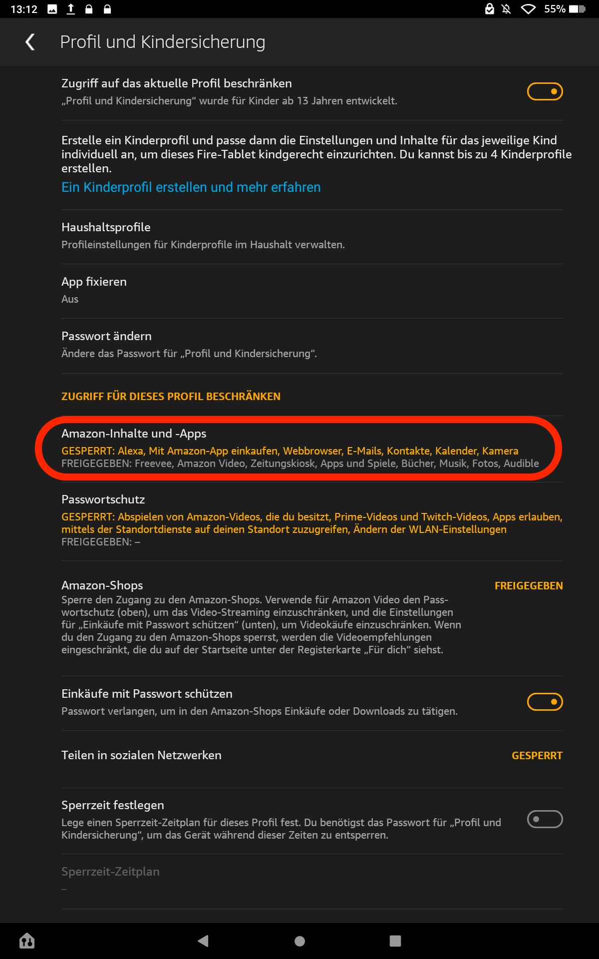 Amazon selbst gibt an, dass die Profilbeschränkungen für Kinder ab einem Alter von 13 Jahren geeignet sind und auch passend für dieses Alter entwickelt wurden.