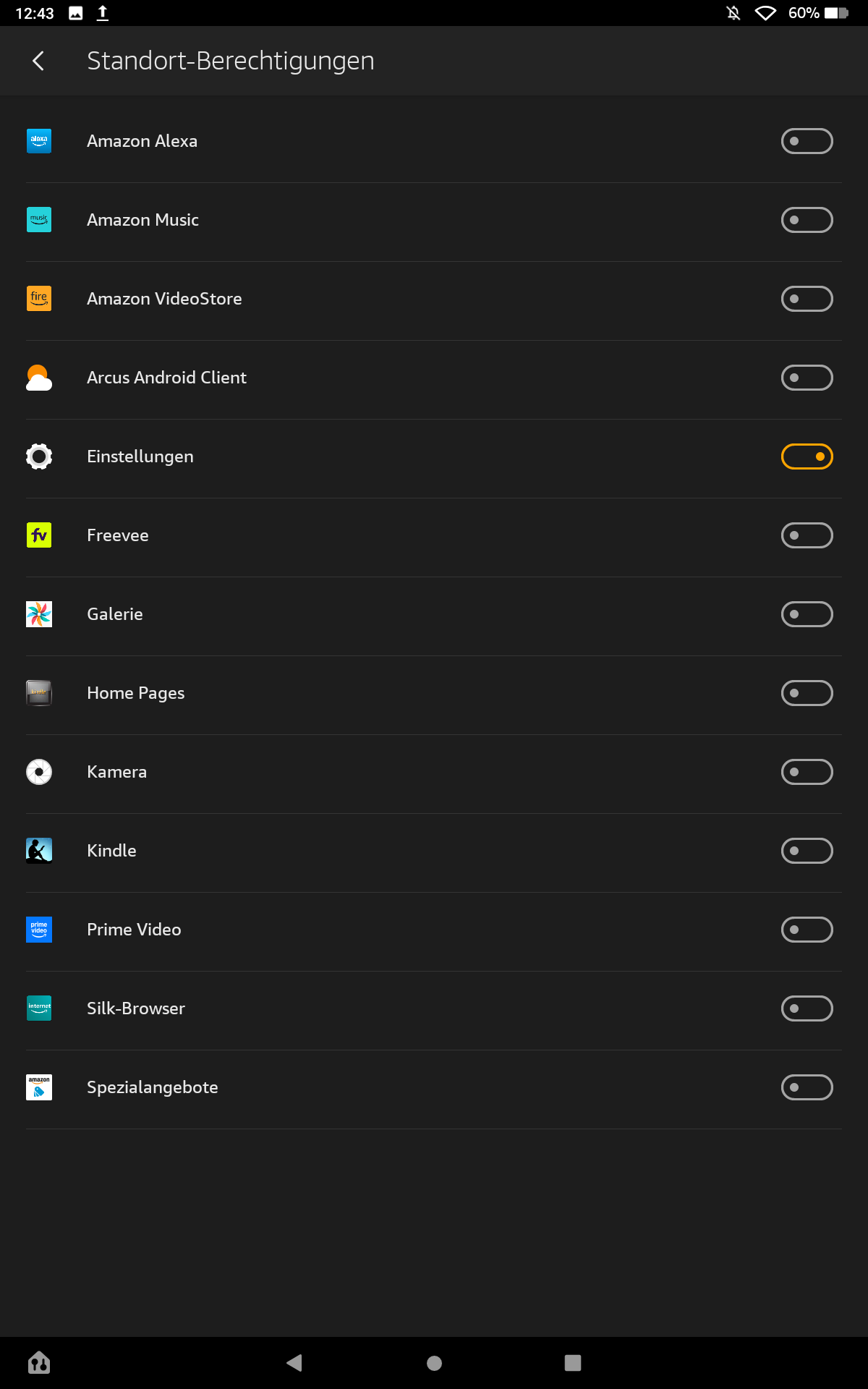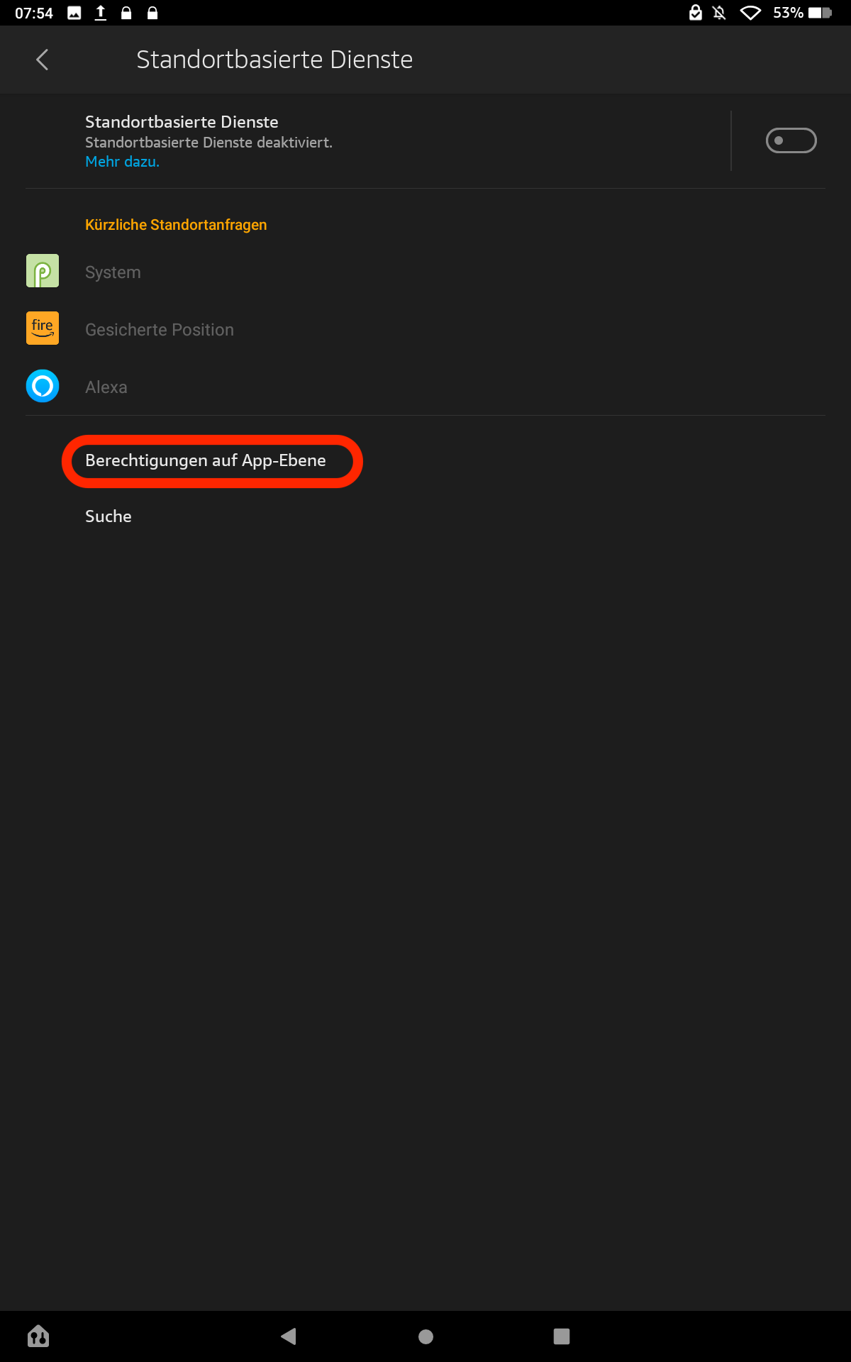7. Deaktivieren Sie den Schieberegler bei der App, von der Sie nicht möchten, dass diese auf den Standort Ihres Tablets zugreift.