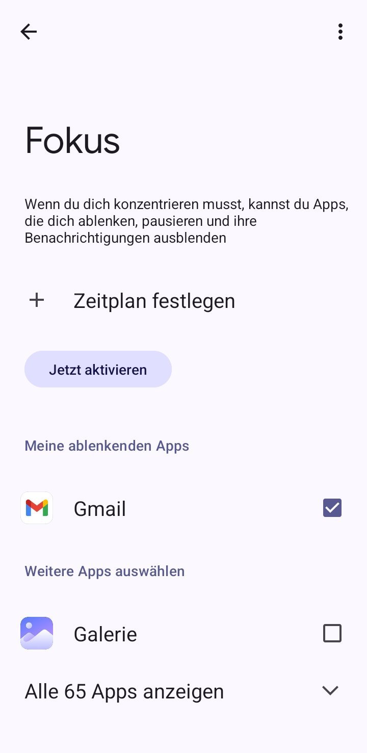 Mit Fokus können Sie ablenkende Apps für eine gewisse Zeit deaktivieren. Ihr Kind erhält in diesen Apps dann keine Benachrichtigungen mehr und kann sie nicht öffnen, solange der Fokus eingeschaltet ist.Dieser Konzentrationsmodus eignet sich vor allem dann, wenn ein Kind ein Elterngerät für bestimmte Zeiten (z.B. zum Lernen) verwenden darf und dabei nur gewünschte Apps nutzen soll.