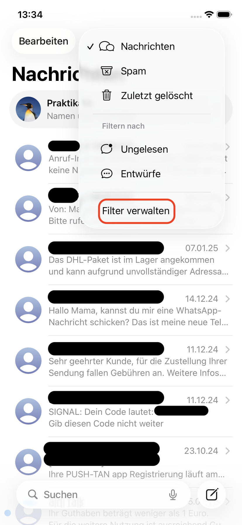 3. Tippen Sie auf Filter verwalten.