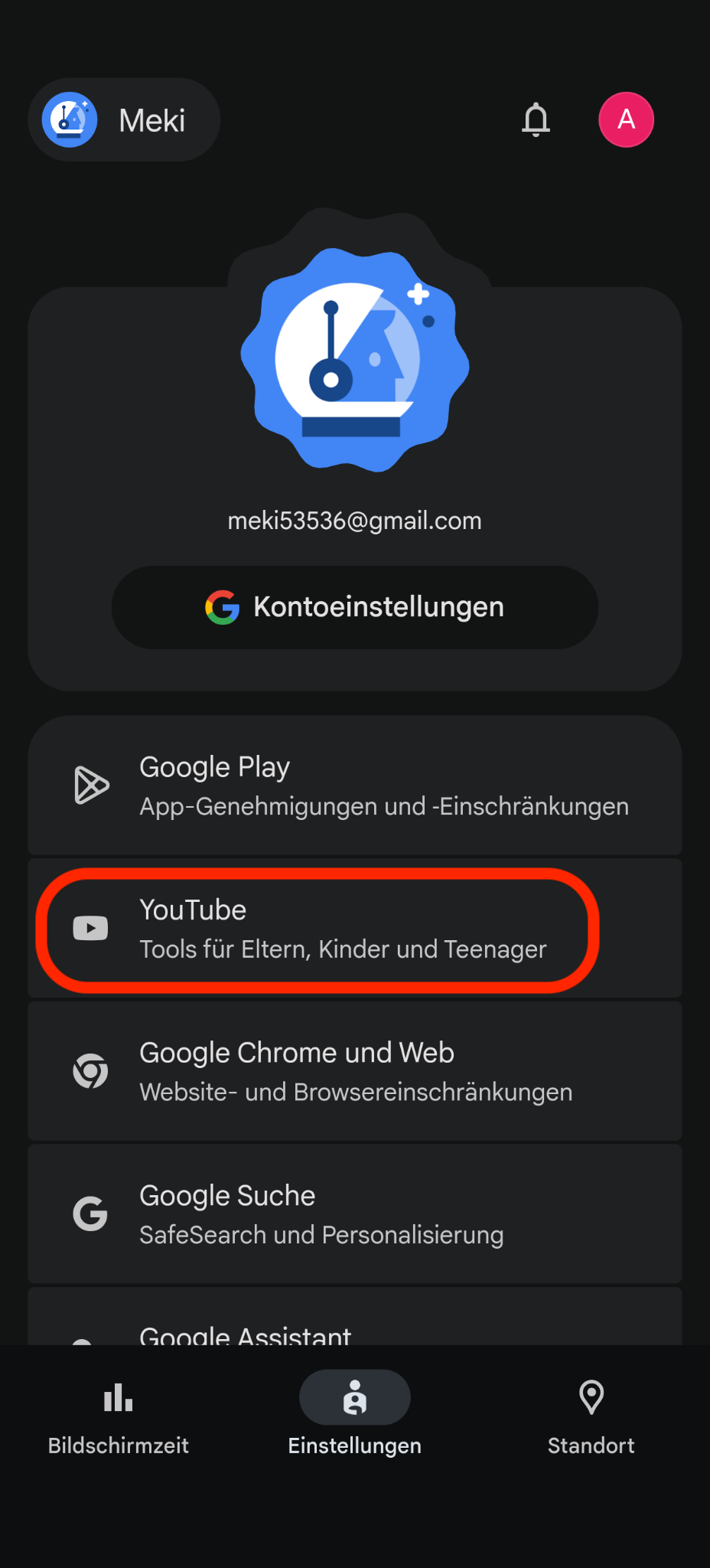 Damit Sie die Elternaufsicht aktivieren können, müssen Sie ein Eltern- und ein Kinderkonto über Google Family Link einrichten. Anschließend gehen Sie wie folgt vor: