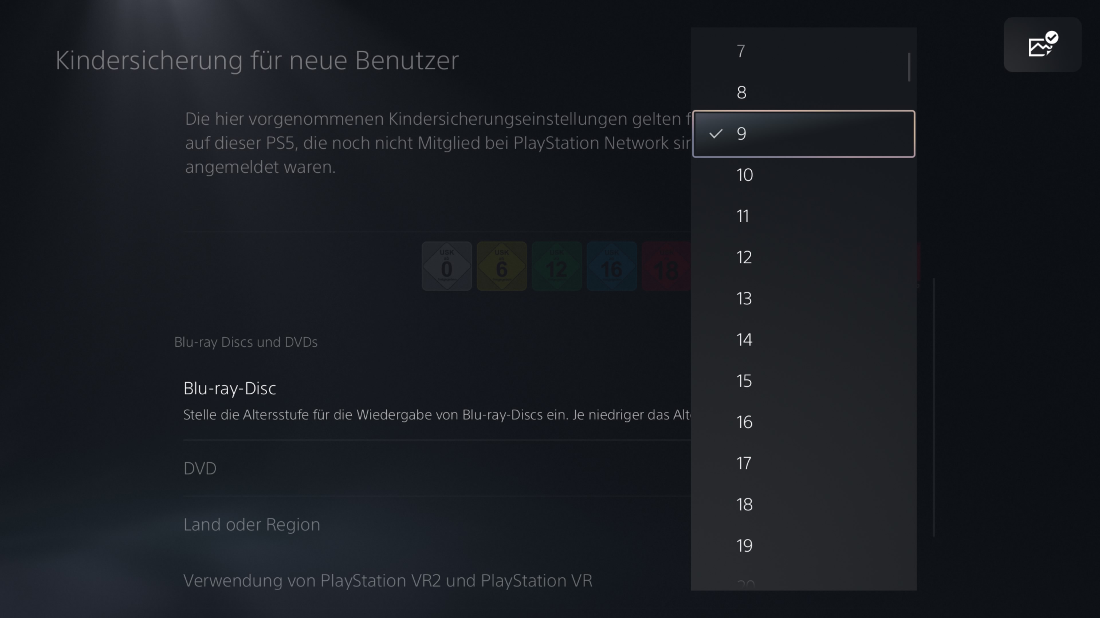 9. Wählen Sie Land oder Region für die Kindersicherung → Germany