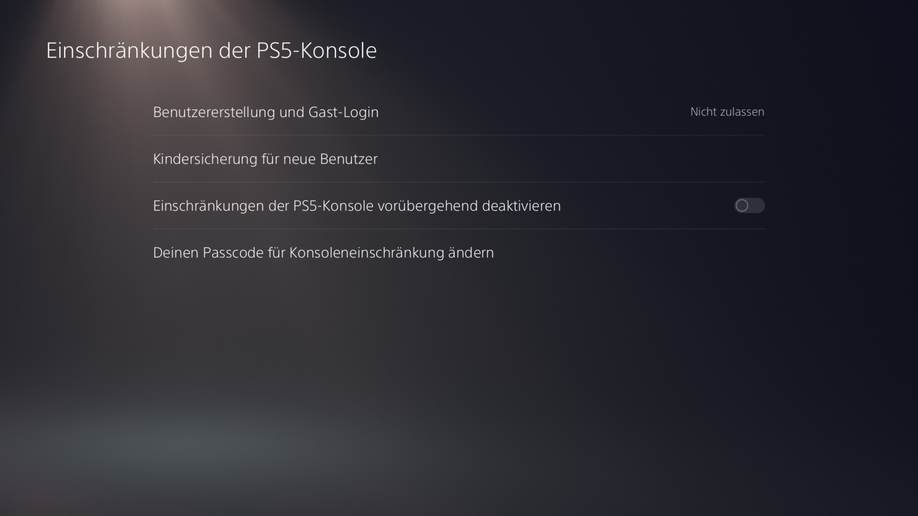 5. Wählen Sie Einschränkungen der PS5-Konsole aus.