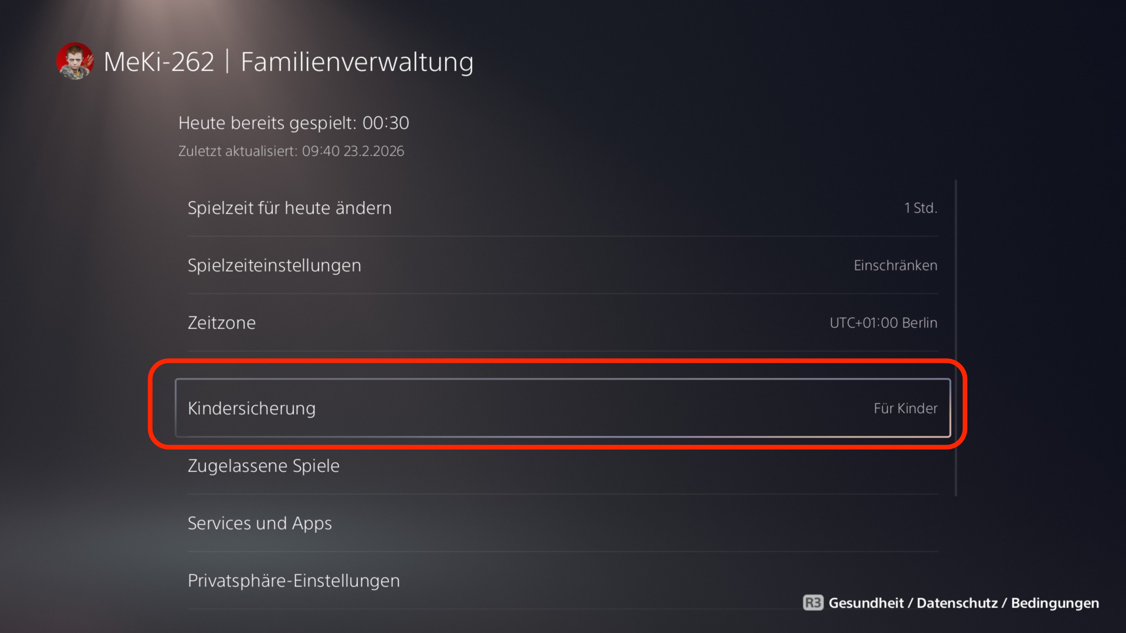 7. Wählen Sie unter Deine Informationen das Land und die Sprache aus, in der Sie die Playstation nutzen möchten. Wählen Sie Weiter.8. Geben Sie das Geburtsdatum Ihres Kindes ein.9. Wenn Sie möchten können Sie Sich weitere Informationen zum Datenschutz durchlesen. Wählen Sie hierfür Mehr zu Datenschutz. Gehen Sie innerhalb des Feldes mit der Pfeiltaste nach unten weiter. Wenn Sie die weiteren Informationen zum Datenschutz überspringen wollen wählen Sie Weiter.10. Sie werden dazu aufgefordert als Eltenteil den Controller in die Hand zu nehmen. Wählen Sie Fortfahren.11. Wählen Sie Ihr bereits erstelltes Elternkonto aus. Dadurch werden Sie Familienmanager und können Einstellungen für das Kinderkonto machen.12. Melden Sie Sich in Ihrem Konto an. Sie können Sich über das Scannen eines QR-Codes oder manuell über die Playstation anmelden. Dadurch werden Sie als Familienmanager ausgewählt. Wählen Sie Weiter.13. Bestätigen Sie das zuvor eingegebene Geburtsdatum Ihres Kindes. Wählen Sie Weiter.14. Geben Sie die E-Mail-Adresse Ihres Kindes ein. Überlegen Sie Sich ein starkes Passwort. Wählen Sie Weiter.15. Geben Sie den Vornamen und Nachnamen Ihres Kindes ein.Wählen Sie Weiter.16. Suchen Sie gemeinsam mit Ihrem Kind ein Avatarbild aus. Dieses wird dann als Profilbild auf der Playstation angezeigt.17. Überlegen Sie Sich eine Online-ID für Ihr Kind. Diese können andere Spielerinnen und Spieler in Spielen, Nachrichten und der Suchfunktion sehen. Bitte geben Sie Ihr nicht den echten Namen Ihres Kindes oder weitere private Daten Ihres Kindes ein. Diese Online-ID können Sie nach der Erstellung des Kinderkontos nicht mehr ändern. Teilen Sie dies Ihrem Kind mit. Wählen Sie Weiter.18. Wählen Sie ein Datenschutzprofil für Ihr Kind aus. Diese beeinflusst, das Online-Spielverhalten deines Kindes. Wir empfehlen die Einstellung Gern für sich und sehr konzentriert. Weitere Einstellungen zu Online-Aktivitäten können Sie noch vornehmen. Eine Anleitung dazu finden Sie im weiteren Verlauf auf dieser Seite. Wählen Sie Prüfen und anpassen.19. Es werden Ihnen die voreingestellten Privatsphäre-Einstellungen für Ihr Kind angezeigt. Wenn Sie Gern für sich und sehr konzentriert ausgewählt haben, können Sie diese so lassen. Welche Auswirkungen die einzelnen Einstellungen besitzen, finden Sie in unserer Anleitung unter Datenschutz und Privatsphäre. Wählen Sie Anwenden.20. Sie werden darüber informiert, dass die Playstation 5 Nutzungsdaten sammelt. Wählen Sie Weiter.21. Sie werden darüber informiert, dass Ihr Kind keine personalisierten Kaufempfehlungen auf der Playstation erhält. 22. Legen Sie fest, welche Inhalte Ihr Kind sehen kann. Die Playstation wählt selbstständig eine Einschränkungsstufe anhand des von Ihnen eingegebenen Geburtsdatums Ihres Kindes aus. Zudem werden Ihnen USK und PeGi-Altersstufen vorgeschlagen. Scrollen Sie über die Pfeiltaste nach unten. Jetzt können Sie auch festlegen, welches Alter und welches Land für das Abspielen von Blu-ray-Discs und DVDs gilt. Auch können Sie auswählen, ob Sie die Nutzung von Playstation VR und Playstation VR sowie das Surfen im Web einschränken wollen. Auch können Sie Einstellungen zur Online-KOmmunikation Ihres Kindes machen. Wir empfehlen alle Online-KOmmuniktaions-Einstellungen auf Einschränken einzustellen. Auch ein monatliches Ausgabelimit lässt sich einstellen. Wählen Sie Bestätigen.23. Lese Sie sich den Hinweis durch und wählen Sie OK.24. Sie können die Spielzeit Ihres Kindes einstellen. Weitere Informationen hierzu finden Sie im Kapitel Bildschirmzeit einstellen. Wenn Sie die Einstellungen später vornehmen wollen wählen Sie Später.25. Um den Vorgang abzuschließen müssen Sie den Nutzungsbedingungen und Endnutzerbedingungen, den Datenschutzrichtlinien, dem Verhaltenskodex und den Softwarenutzungsbedingungen zustimmen. Wählen Sie Ich stimme zu und Bestätigen.26. Sie können jetzt einstellen, dass Ihr Kind keine weiteren neuen Benutzer erstellen darf, um so die Kindersicherung zu umgehen. Wählen Sie Jetzt einstellen. Geben Sie einen Passcode ein, den nur Sie wissen. Wählen Sie OK.25. Es wird ein QR-Code angezeigt, mit dem Sie auch im Nachgang einfacher die Privatsphäre-Einstellungen Ihres Kindes ändern können. Wählen Sie OK.26. Sie werden dazu aufgefordert die E-Mail-Adresse Ihres Kindes zu verifizieren. Dann können alle vorgenommenen Einstellungen auch angewendet werden. Dafür erhalten Sie eine E-Mail an die E-Mail-Adresse Ihres Kindes. Diese müssen Sie öffne und E-Mail-Adresse bestätigen auswählen.27. Sie können im weiter Schritt ein Login-Passwort für die PS5 festlegen. Dieser Schritt ist aber nicht unbedingt notwendig zum Abschluss der Kindersicherung. Wählen Sie OK.28. Sie werden dazu aufgefordert den Controller wieder Ihrem Kind zu überreichen. Wählen Sie OK.29. Sie werden darüber informiert, das der Einrichtungsprozess abgeschlossen ist. Jetzt sind Sie mit dem Konto Ihres Kindes auf der PS5 angemeldet.