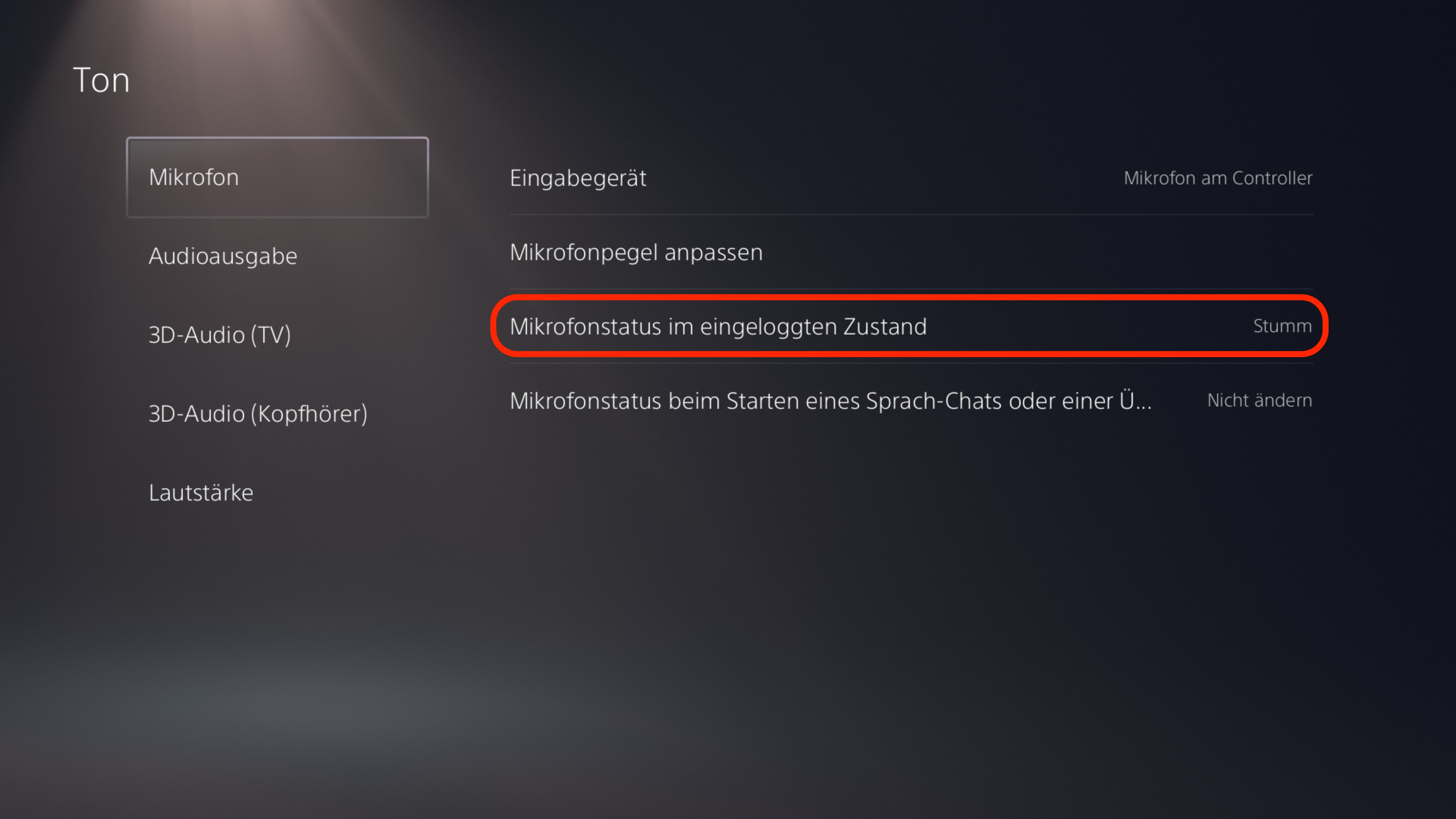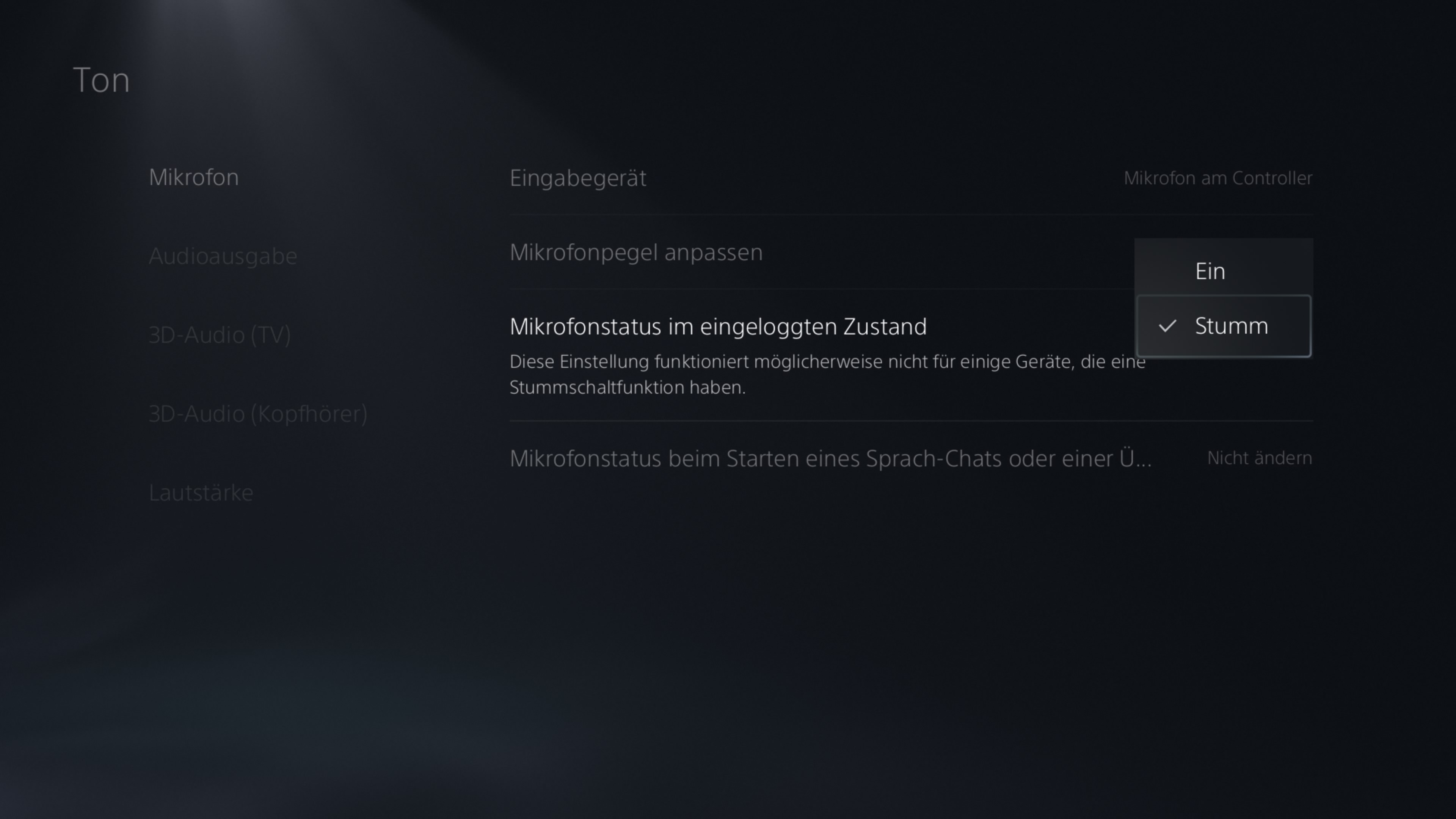 4. Wählen Sie nun Stumm. Das Mikrofon bleibt nun auch bei einem Neustart der Konsole deaktiviert, außer Sie aktivieren es manuell.